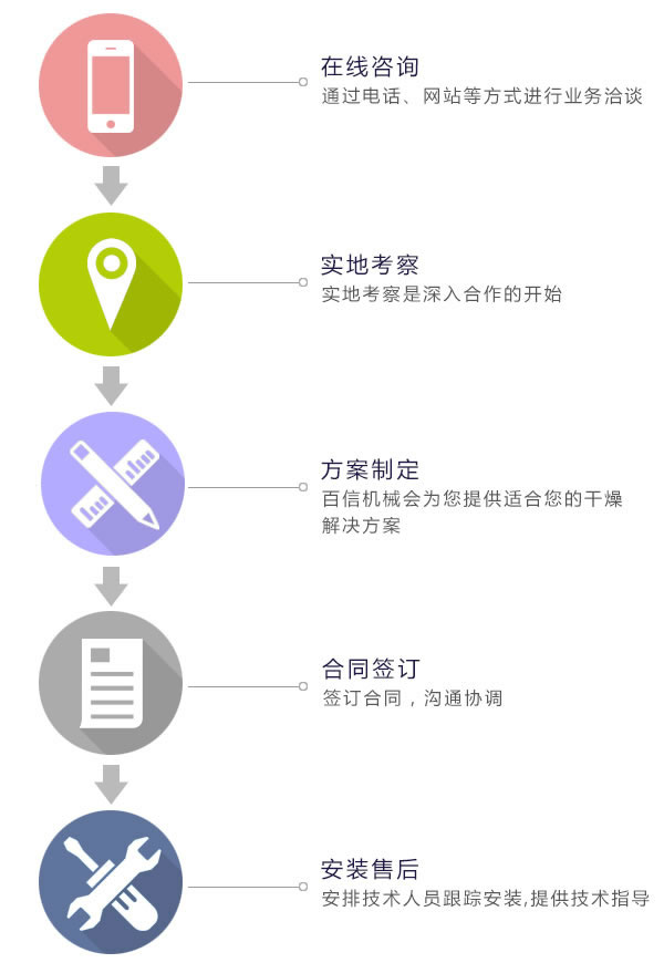 《江洲區(qū)食品藥材烘干設(shè)備網(wǎng)帶烘干機(jī)----百信設(shè)備》?合作流程: