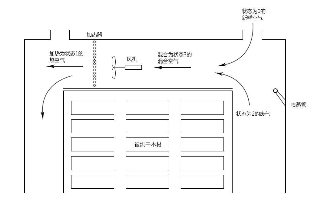 木材干燥介質(zhì)的循環(huán)過程圖 木材烘干曲線變化圖