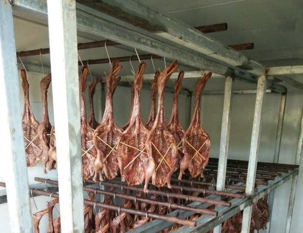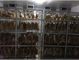 2肉制品熟化工藝是人為的提供合適的溫濕度完成物料的熟化、成分合成、轉換等過程。只有在適合的溫濕環境才能保證臘鴨的顏色和香味,否則達不到熟化的過程,那么臘鴨的香味就出不來,品質也就降低了。